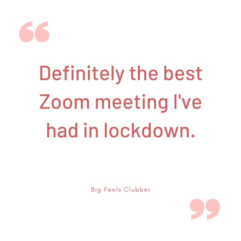 Each month Big Feels Club members come together for the members-only online talk, via Zoom.